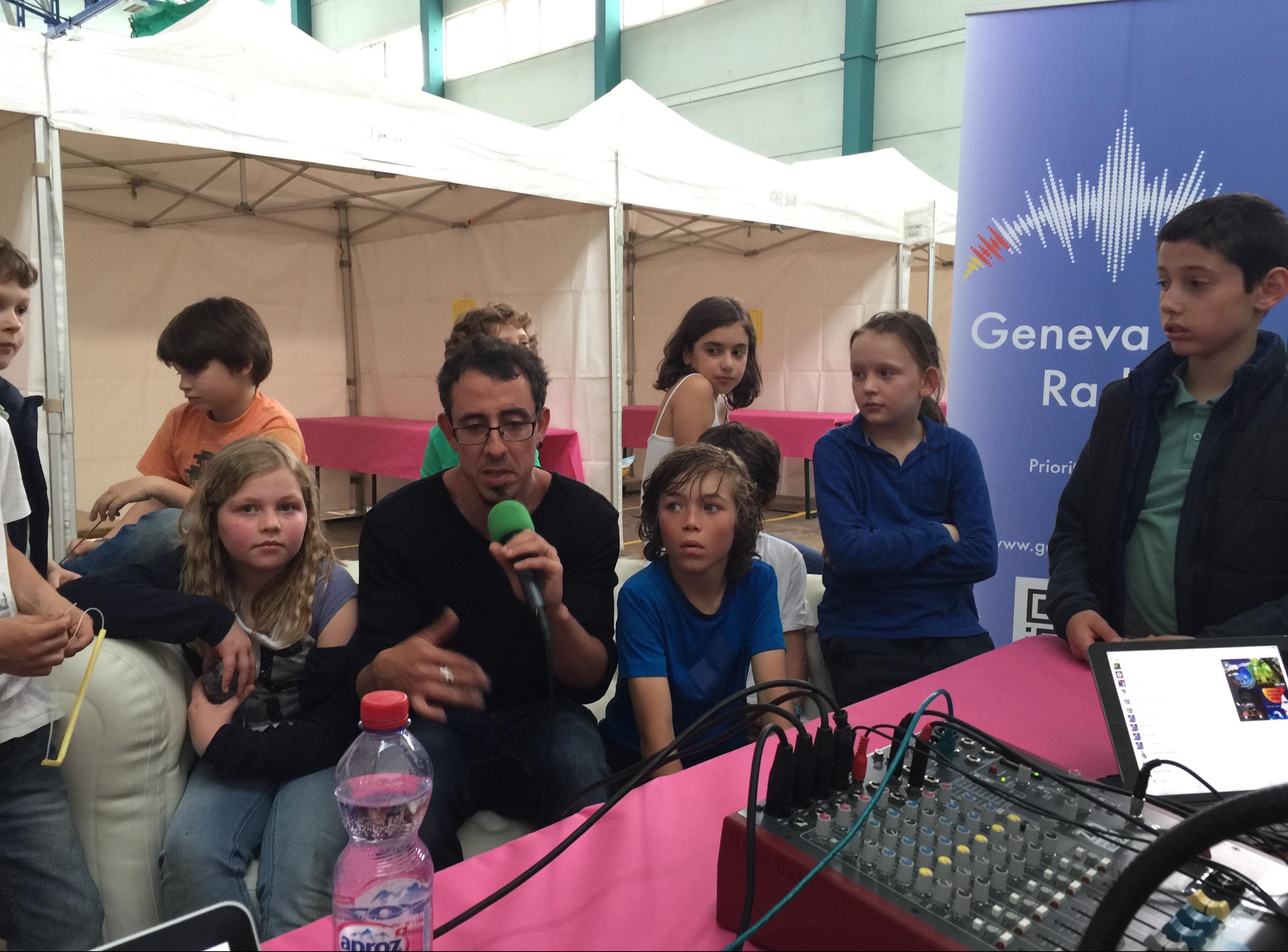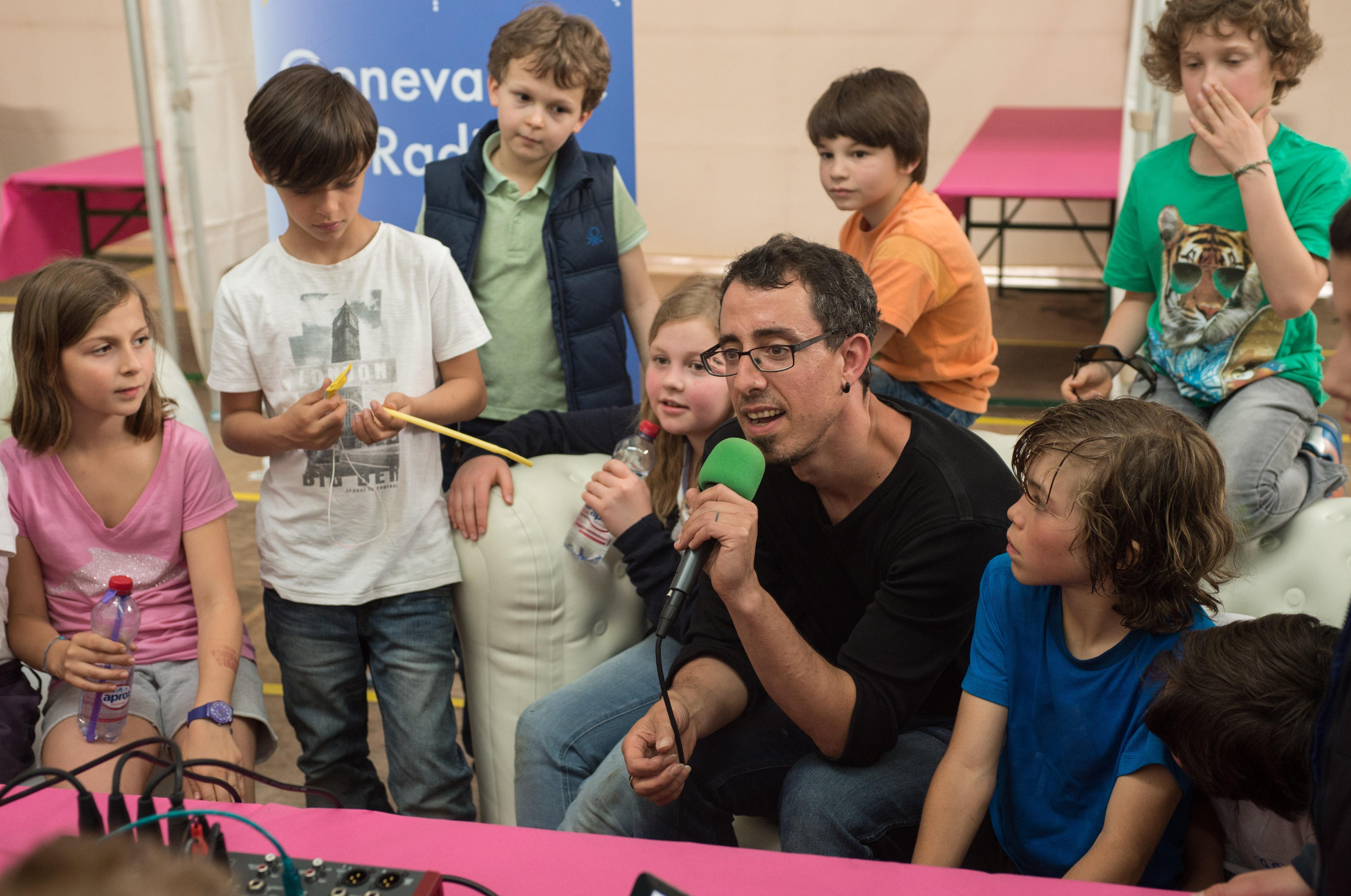Visite de la classe 6p école Contamines durant les préparatifs de la fête le 27.05.2016